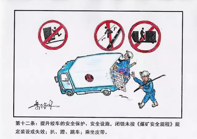12、提升絞車的安全保護(hù)、安全設(shè)施,閉鎖未按《煤礦安全規(guī)程》規(guī)定裝設(shè)或失效;扒、蹬、跳車;乘坐皮帶。