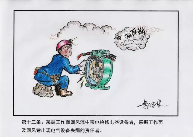 13、采掘工作面回風(fēng)流中帶電檢修電氣設(shè)備者,采掘工作面及回風(fēng)巷出現(xiàn)電氣設(shè)備失爆的責(zé)任者。