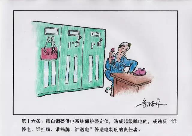16、擅自調(diào)整供電系統(tǒng)保護(hù)整定值,造成越級跳電的,或違反“誰停電、誰掛牌、誰摘牌、誰送電”停送電制度的責(zé)任者。