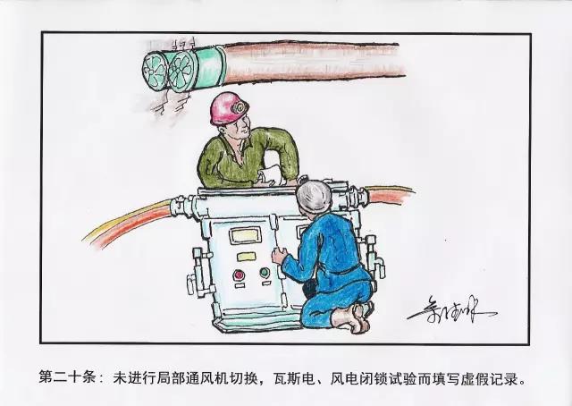 20、未進(jìn)行局部通風(fēng)機(jī)切換,瓦斯電、風(fēng)電閉鎖試驗(yàn)而填寫虛假記錄。
