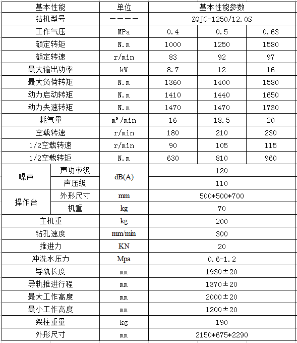 用途:ZQJC-1250/12.0S氣動架柱式鉆機主要是以壓縮空氣為動力,主要使用高效螺旋鉆桿和硬質(zhì)合金鉆頭回轉(zhuǎn)鉆進的動力頭式鉆機。該鉆機為便攜式,由回轉(zhuǎn)動力裝置、導軌、雙立柱和操作臺組成。它具有安全防爆、轉(zhuǎn)矩大、轉(zhuǎn)速高、質(zhì)量輕、體積小、效率高、結(jié)構(gòu)簡單、維修方便等特點。適用于探測地質(zhì)構(gòu)造煤層、探放水、抽放瓦斯、煤體注水、卸放壓力孔、巷道貫通超前孔、巷道錨桿支護孔及其他特殊用途。該機工作效率高、進尺費用少、成孔質(zhì)量高、工人操作勞動強度低,是煤礦行業(yè)必備設(shè)備之一。