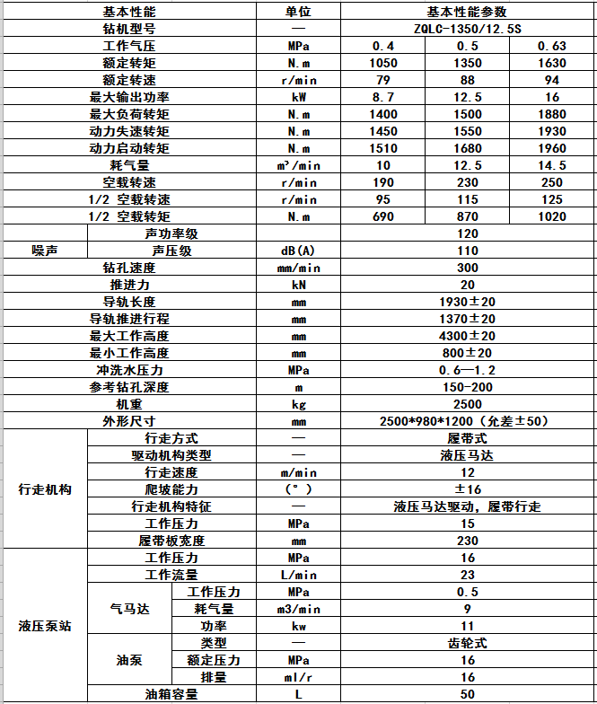 ZQLC-1350/12.5S氣動(dòng)履帶式鉆機(jī)是我公司生產(chǎn)的新一代履帶行走式鉆機(jī)。是一種以壓縮空氣為動(dòng)力,履帶行走式輕型深孔鉆機(jī)。適用于煤礦井下采用高效螺旋鉆桿和硬質(zhì)合金鉆頭在煤層中的探水、探瓦斯及瓦斯抽放孔的施工。