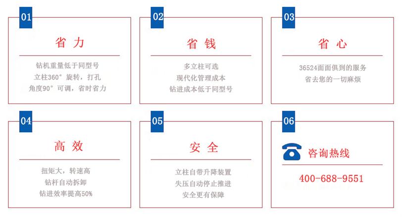 ZYJ-380/210架柱式液壓回轉(zhuǎn)鉆機產(chǎn)品詳情 類別:架柱式液壓回轉(zhuǎn)鉆機 型號:ZYJ-380/210 品牌:河北啟睿 用途:ZYJ -380/210架柱式液壓回轉(zhuǎn)鉆機,適用于各種復(fù)雜條件及巖層巷 道下的放頂鉆孔、探水孔、探瓦斯孔、放水孔、電纜孔、瓦斯排放孔、地 質(zhì)資料孔等范圍。該機型是我公司分析國內(nèi)外各種鉆機及潛孔鉆的優(yōu)缺點 ,結(jié)合礦山巷道洞室內(nèi)特定環(huán)境而設(shè)計、制造的架柱式回轉(zhuǎn)鉆機。具有結(jié) 構(gòu)合理、工藝適應(yīng)性強、操作安全可靠、解體性好、可與多種 鉆具配套使用等特點。